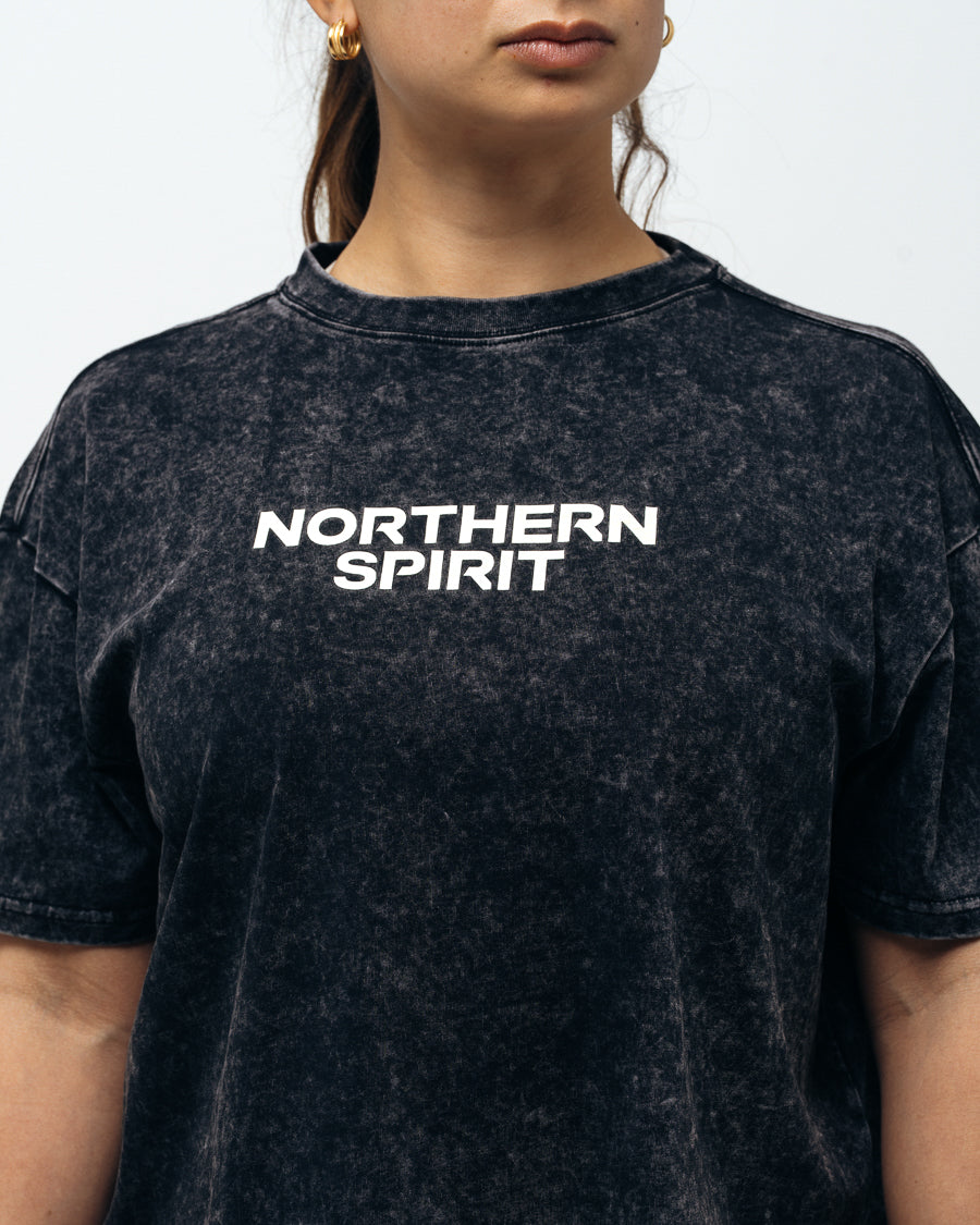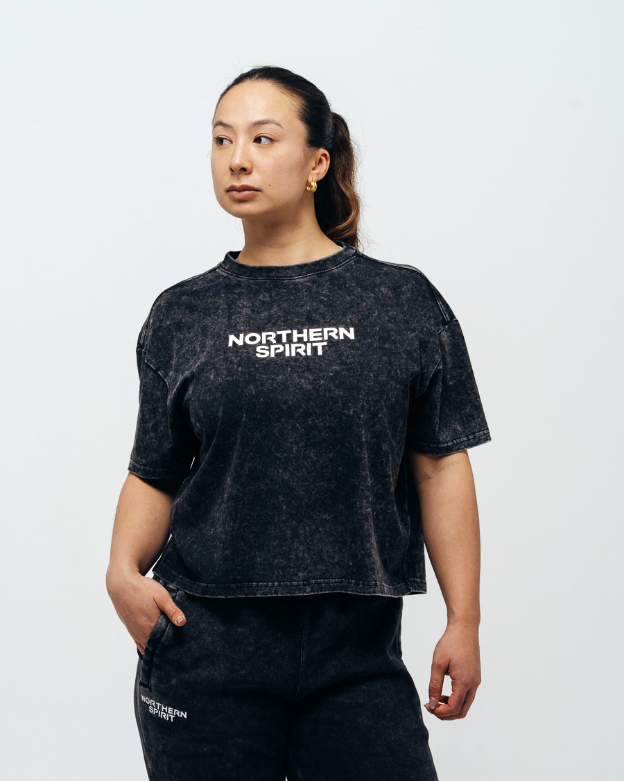 Women's Cozy Oversized Crop Top Washed Black