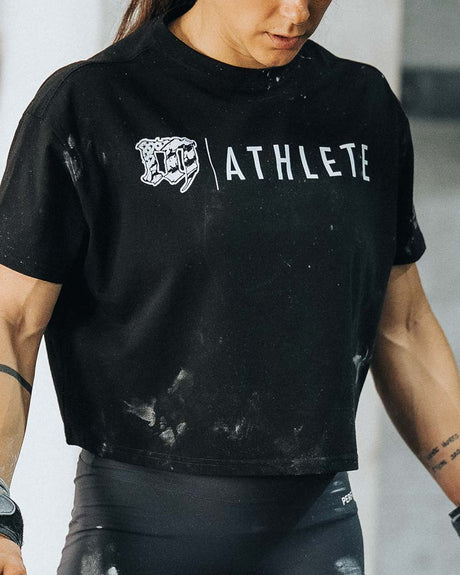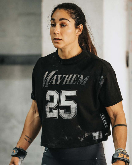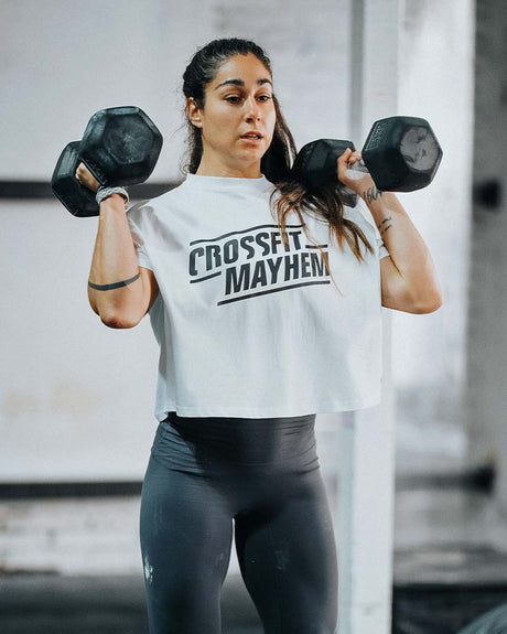 Crossfit women wearing Mayhem x Northern Spirit t-shirt in a gym